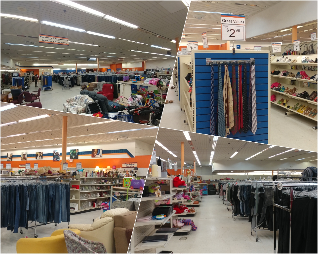 그 와중에 눈에 띄는 곳이 Good will이라는 체인(?) Thrift Shop이였는데요, 핀란드에서도 캐나다에서도 이와 비슷한 대형(?) Used Shop이 그렇게 나쁘지 않았던 기억이 있어서 집에서 가까운 지점을 한번 찾아가 보았습니다. 대부분의 Thrift Shop들이 그러하듯 이곳 역시 옷가지 뿐아니라 다양한 생활용품 들이 진열되어 있었습니다. 사람들이 사용하던 물건들을 저렴하게 구매하거나, 기부를 받거나, 재고처리를 하지 못한 물건들을 기업들로부터 받거나 한 물건들이 진열되어 있습니다.