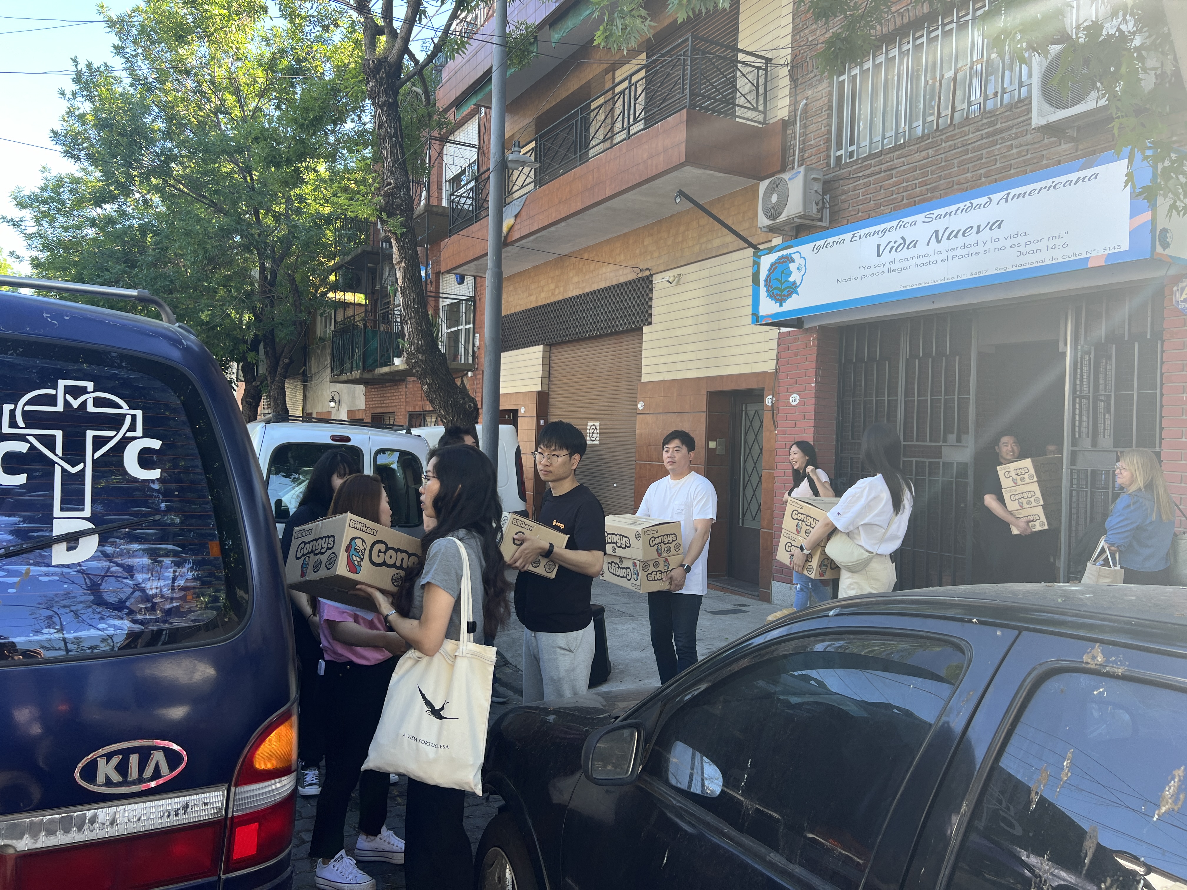 그리고 묵상을 마치고 오늘 일정을 위해 준비했다. 오늘 방문하는 교회는 세곳, 그러나 복음제시 사역을 하는 곳은 두곳이다. 중간에 다시 선교센터를 들르기 어려운 동선이다. 그러다보니 몇일 전에 준비한 "봉다리 과자" 선물을 많이 준비해갔다. 선교센터에 차량이 많이 있지 않다보니, 선교사님들 개인차량도 이용하여 이동했다.