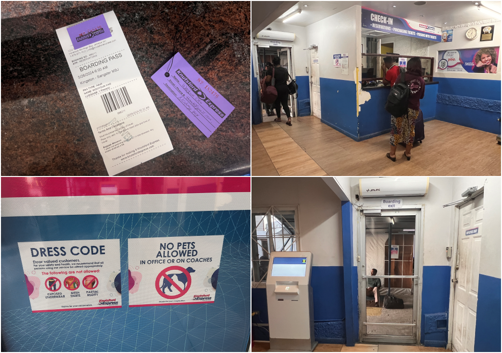 몬테고베이로 돌아가는 버스 역시 Knutsford Express입니다. 키오스크도 있지만, 창구에 들려서 예약번호를 알려주면 이렇게 티켓을 프린트해서 줍니다. 짐이 하나 있다고 하니 짐에 걸어두라고 택을 하나 주기도 하더군요.