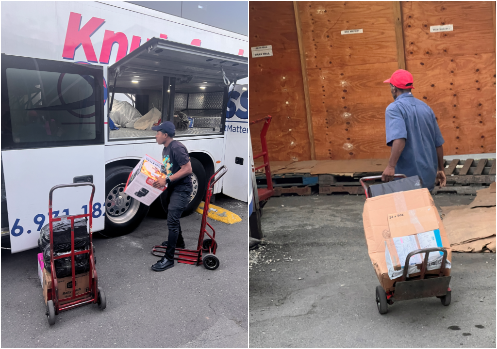 Knutsford Express는 승객 이송업무 외에도 택배업무도 덩달아 한다고 하는데요, 그래서 그런지 아침부터 킹스톤을 떠나는 손님들 외에도 몬테고베이 등에 택배물건을 배송하려고 하는 손님들도 가득했습니다. 킹스톤에 올 때와 다르게 몬테고베이로 돌아갈때는 화물칸의 짐이 한가득이였어요.
